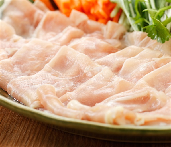 「大山どり」は、飼料会社との共同開発による「大山どり専用飼料」を与えることにより、腸内細菌を整え、バランスの良い脂のりと旨味を追求しています。加工前の冷却工程において、空気だけで冷却する方式を採用しており、外部から水分を取り込まず、余分な水分を冷風で飛ばしていくことで、鶏肉が持っている本来の美味しさを引き出し、新鮮で美味しい鶏肉を実現しています。