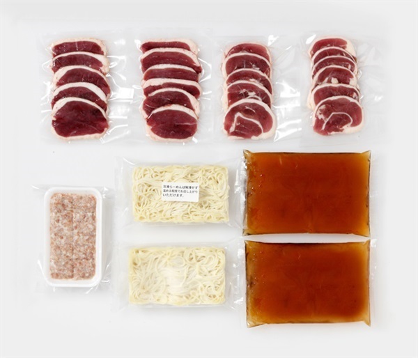 じっくり丁寧に育てられた鴨肉の旨味を堪能できる鴨鍋セット。鴨肉はロースとモモの二種類の部位が付いており、そのどちらも鮮度が良いのでしゃぶしゃぶでくぐらせるだけで食べられるし、旨味が凝縮されたその噛みごたえの良さもクセになっちゃいます!本鴨つみれも美味しくて、ポン酢に七味を混ぜたタレにつけて食べるのが特に気に入りました。締めにはお野菜と鴨肉の美味しさが溶け込んだ特製だしスープに、セットの麺を入れることで鴨だしラーメンも楽しめちゃいますっ!家族みんなでニコニコと楽しく食べられたので、普通の鶏肉じゃない美味しさを求めるのなら購入して損は無いと思います。