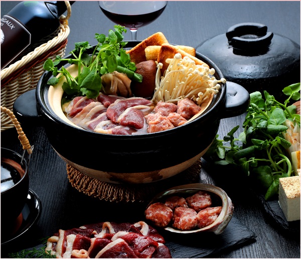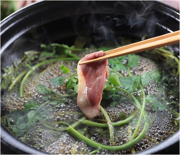 島根県の野草11種類から抽出された野草ミネラルに漬け込んで熟成させた本鴨を鍋に